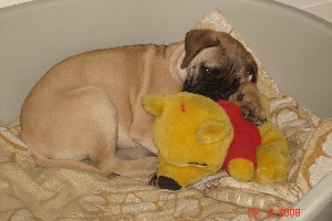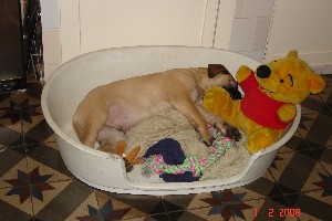 | Anzac met zijn broers en zussen. Hier zijn ze 7,5 week oud. | |