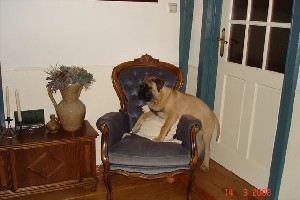 | Even poseren voor de foto en daarna weer heerlijk relaxen in m'n mand! | |