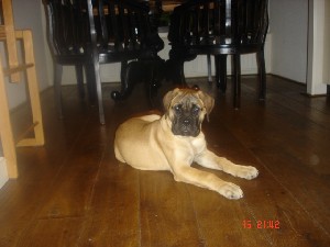 | Lekker genieten in de voorjaarszon. Op deze foto is Bo ongeveer een half jaar oud. | |