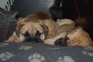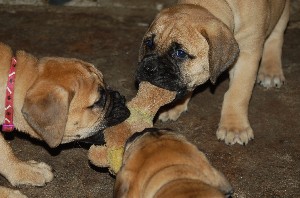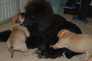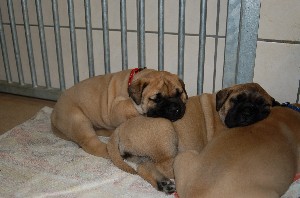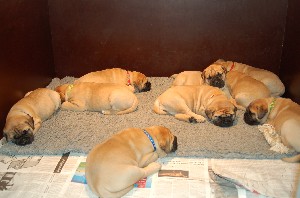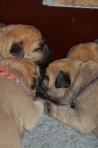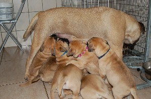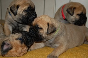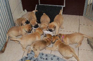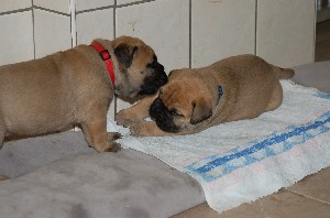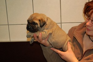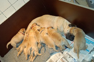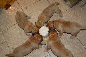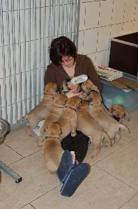 | De pups zijn afgelopen donderdag 4 weken oud geworden. Het beginnen nu ook leuke, vrolijke en levendige hondjes te worden. Beginnen te spelen, elkaar uitdagen, moeder Shana vervelen en alles met hun bekkies ontdekken. Deze week hebben de pups ook hun laatste flesvoeding gehad. Vanaf nu dus aan de pap... | |