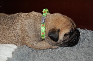 pups hun nieuwe halsbandjes om gekregen. Voor de pup linksboven was of