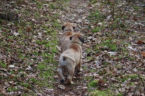 | Vandaag in een paar shifts met de pups naar het bos geweest. Ze vonden het erg leuk. Spannend om een heel bos te mogen ontdekken... | |