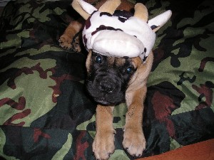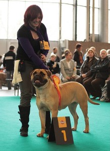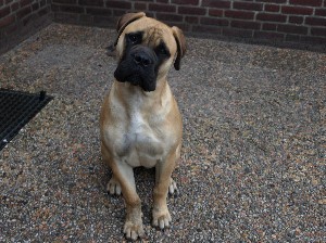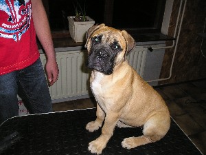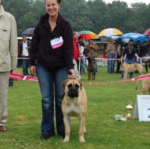 | Scosha op de clubmatch van de BMCN. Ze werd hier 1e in de puppyklasse bij de teven. | |