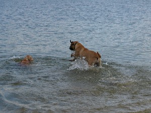 | Scosha is op deze foto's een half jaar oud. Mevrouw houdt van zwemmen.... | |